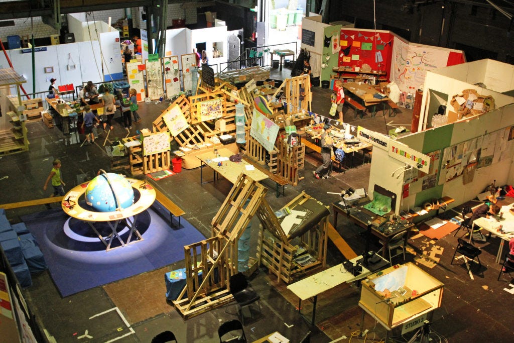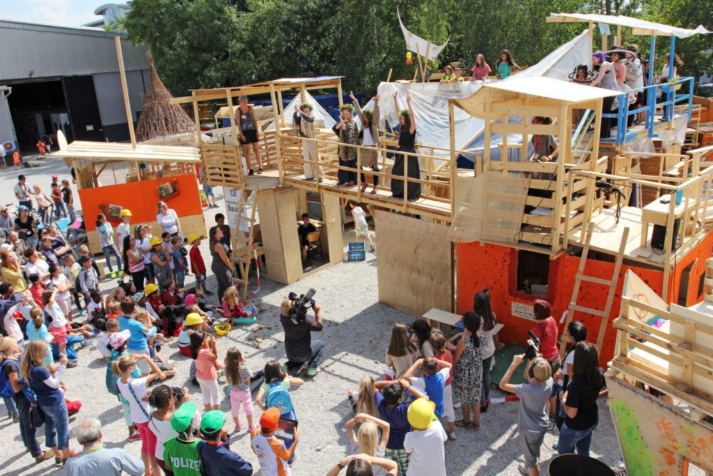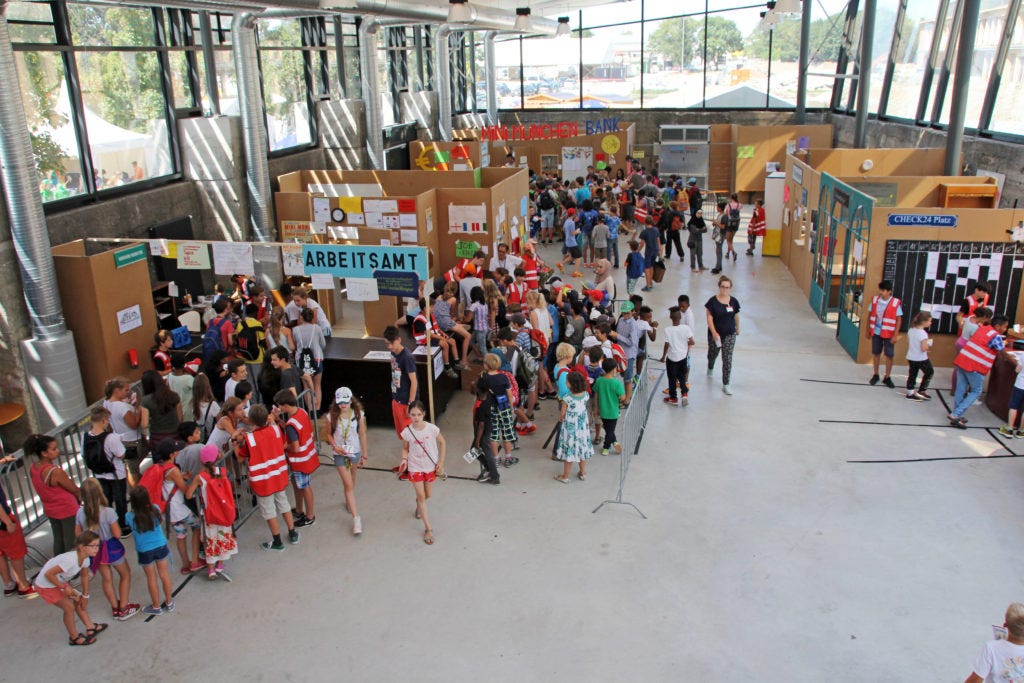 Mini-Munich is a laboratory of learning, thinking and doing and deserves to be discovered as such. Because the children want to do things, they think, and in doing so they learn. Many, even in Munich, still think of this as a very lovely and rather elaborate holiday childcare provision. This is not childcare! Mini-Munich relates to school not as leisure relates to work, it relates to it more as the grammar of industrial society relates to that of a post-industrial society built around human activity, which is being shaped here, and that is what is so remarkable. One gets an idea of what a school could look like. One made of workshops, studios, practice rooms, also cafés and rooms of stillness. In such a school teachers would also be those who gather interesting people. They bring in experts, masters of their craft, ambassadors from the world of meaningful work, and lead the children out to interesting places. The school itself would be a base camp of society, a generative place where generations come together and create something new. And how important is the vitality and curiosity of children for us adults! It would be a give and take.